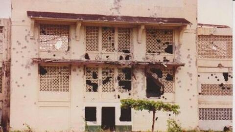 Parte frontal del sitio en donde se alojaba la Compañía de Infantería de Marina que inicio a comandar Amadis Jiménez en Coco Solo el día de la invasión, el 19 de diciembre del 1989. Crédito: Cortesía de Amadis Jiménez